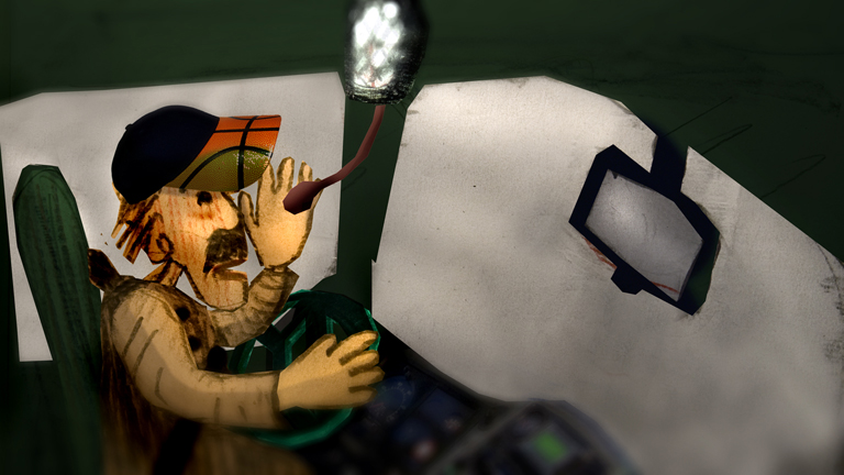 The episodic quality the collage displays have something very characteristic to the author in them. A monumental narrative – Tammsaare – meets His Holiness Estonian animation, but the everyday and prosaic situations Vapper has created, in which the battle of the titans should take place contains no intrigue. Tammsaare wrote about the eternal struggles of the ‘small men’ and so Vapper depicts Tammsaare in a similar yet peculiar situation. But as he includes no evident irony or intrigue that deviates from the original or adds a layer of meaning to it, Vapper’s fictive film stills display a sense of bewilderment often articulated by the artist.